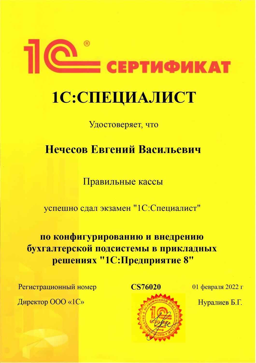 Свидетельство о прохождении курса «Специалист-Консультант по 1С:Бухгалтерии»